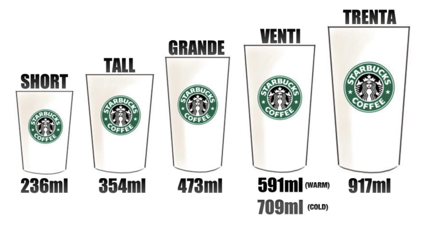 스타벅스 코리아 컵 음료 사이즈 종류