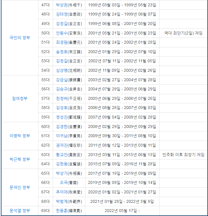 특히 언론지상에 논란이 나오거나 정책적 성과가 나오지 않으면 파리목숨처럼 장관직을 잃는경우를 우리는 수 없이 많이 봐왔고, 또 유명세를 타게 되면 총선이나 지선에 출마하기 위해 사퇴를 하는 경우도 많았습니다.